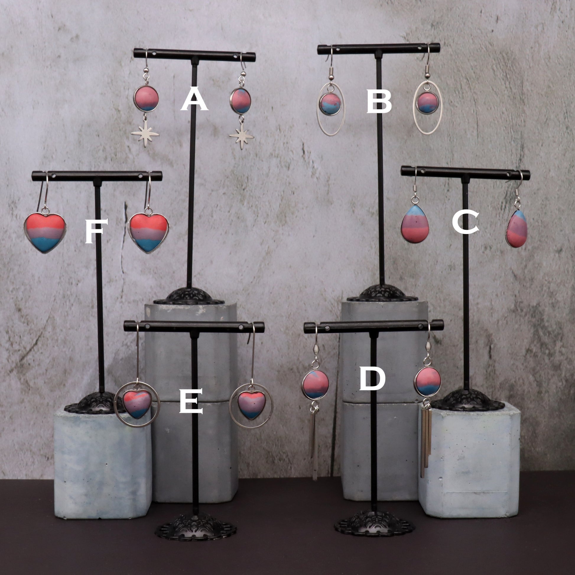 Each piece in this collection is the result of swirls of pigmented artisan concrete inspired by the Bisexual Pride flag mounted on stainless steel settings with stainless steel accents and hardware. These pieces are from my fundraiser for The Trevor Project. 25% of the purchase price is donated to this important organization to aid in their goal of ending youth LGTBQ+ suicide. The rest of the Concrete & Steel Pride Jewelry collection can be found here.